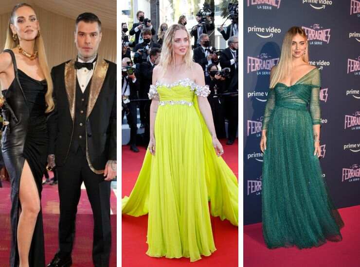Sia Chiara Ferragni che Fedez hanno presenziato al Met Gala della precedente edizione, indossando entrambi una creazione di Versace. Chiara Ferragni ha preferito un long dress nero drappeggiato con dettaglio monospalla, a cui ha abbinato guanti in pelle. L’abito è una creazione d’archivio della collezione Couture 1997, l’ultima disegnata da Gianni Versace. Alla première di The Ferragnez – La serie nel 2021, ha proposto un abito verde smeraldo in chiffon e pois di Dior. Infine, al Festival di Cannes 2021, ha optato per un abito verde lime di Giambattista Valli Haute Coutoure.