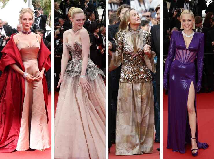 Uma Thurman riappare sul red carpet, con indosso un abito rosa cipria in raso accompagnato da una vaporosa mantella rosso ciliegia di Christian Dior. In aggiunta, ha sfoggiato un collier tempestato di pietre preziose di Chopard. Elle Fanning appare una fata sul red carpet del Festival di Cannes 2023. Indossa una creazione di Alexander McQueen, con corpetto scultura tempestato di perline e strass e lunga donna champagne. La luminosità del look è data anche dal collier di Cartier. Brie Larson ha scelto un long dress in raso sui toni dell’oro accompagnato da un blazer tempestato di paillettes di Chanel. Reduce dal successo di Guardiani della Galassia, Pom Klementieff ha calcato il red carpet con una creazione Versace sfumatura Very Peri.
