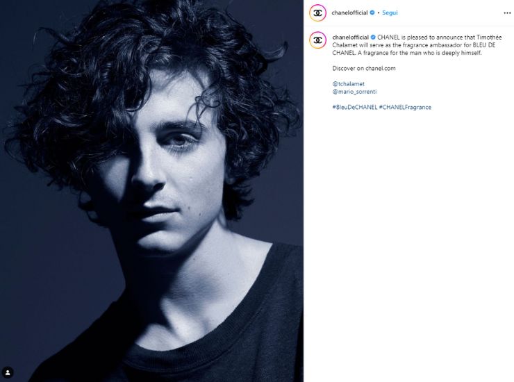 Timothée Chalamet nuovo volto di Bleu de Chanel