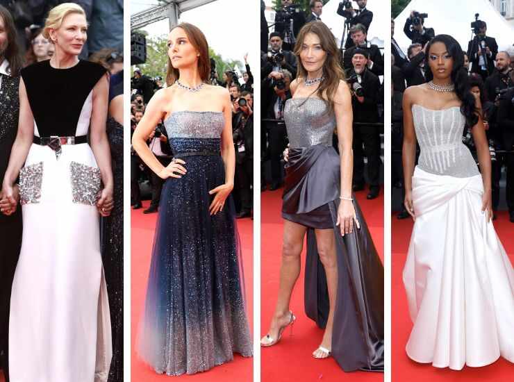 Anche Natalie Portman ha stregato il red carpet, indossando un long dress firmato Dior completamente rivestito di paillettes, senza spalline, che rincorre le sfumature di azzurro. Un trend proposto già da Helen Mirren alla cerimonia di inaugurazione e che sembra piacere sempre più alle star. Le sfumature di blu che accompagnano l’abito di Natalie Portman richiamano anche il prezioso collier di Chopard. Anche Carla Bruni ha particolarmente apprezzato la scelta di zaffiri, che arricchiscono il suo collier e regalano maggiore luminosità al look. Per Cannes, ha scelto un minidress d’argento con strascico asimmetrico di Celine. Didi Stone ha optato per un look avorio, con corpetto senza spalline tempestato di micro perline di Rami Kadi.