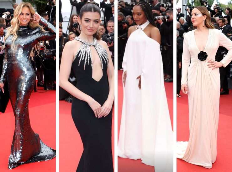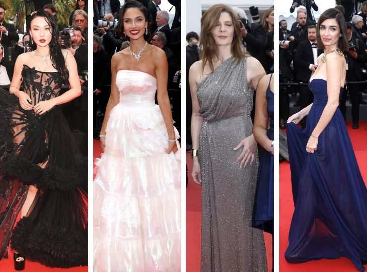Ed è ancora trend mermaid a Cannes, con l’abito tempestato di macro paillettes d’argento a collo alto indossato da Adrianna Karembeu. Flora Dalle Vacche ha scelto un abito total black che esalta la silhouette con dettagli gioiello di Pamella Roland. Naomi Ackie ha indossato un abito mantella bianco perla di Valentino con colletto vintage. Avorio, invece, è il long dress con scollatura a V plissé arricchita da un fiore lucido nero ad altezza petto scelto da Monia Chokri. Il suo look porta la firma di Gucci.