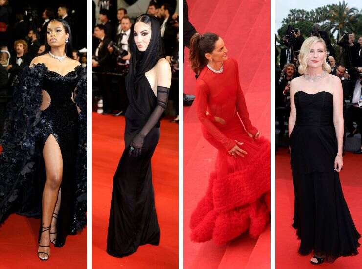 Didi Stone ha scelto un long dress total black tempestato di paillettes, con dettagli cut out, abbinato ad una vaporosa mantella ton sur ton arricchita da rouches. E total black sia anche per Giulia De Lellis, di ritorno alla kermesse francese con un abito in raso e guanti in chiffon. Rosso corallo e trasparenze, con dettagli cut out e aggiunta di rouches, è l’abito proposto da Izabel Goulart e firmato LaQuan Smith. Anche Kirsten Dunst è riapparsa in quel di Cannes accanto al marito e, per l’occasione, ha indossato un abito vintage Chanel.