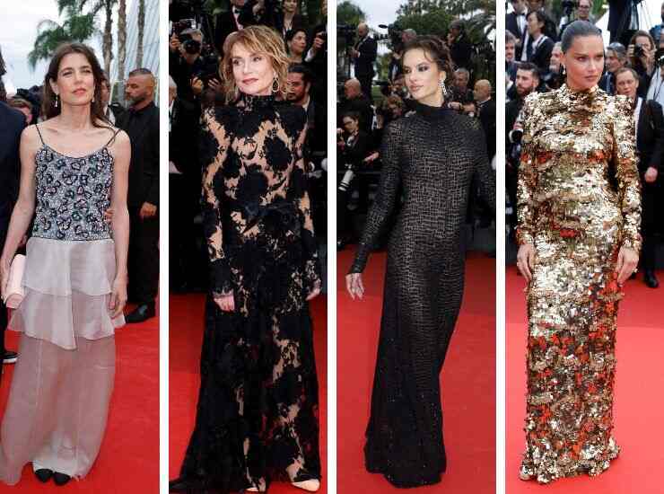 Ed è Chanel Haute Couture anche l’abito indossato da Charlotte Casiraghi. Per la quinta giornata di red carpet, ha proposto una gonna i raso bianca e top tempestato di paillettes e pietre colorate. Isabelle Huppert, invece, ha scelto un long dress nero con ricami in pizzo e decorazioni floreali di Balenciaga. Alessandra Ambrosio, invece, ha seguito il trend dell’animalier, giocando con le trasparenze ed una cascata di pietre preziose total black di Giorgio Armani. In aggiunta, la modella ha proposto gioielli di Pomellato. Cascata di maxi paillettes effetto mermaid è invece l’abito di Adriana Lima, una nuvola in oro firmata Naeem Khan.