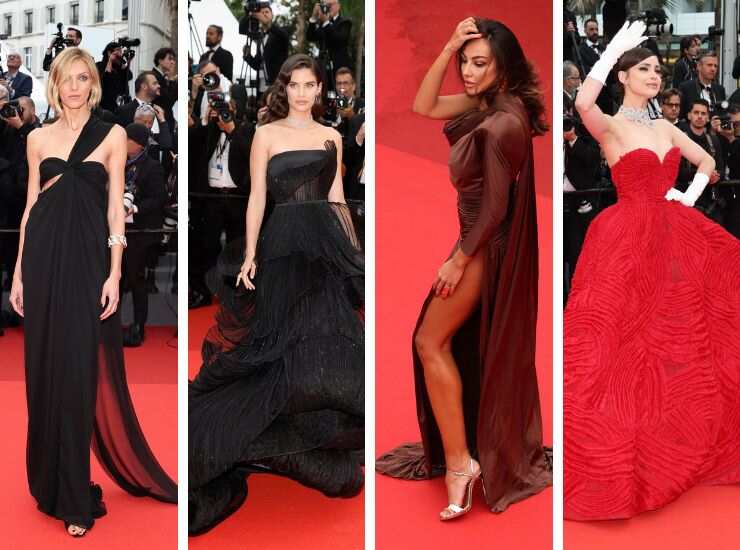 Madalina Ghenea ha scelto un long dress sfumatura cioccolato, con dettaglio monospalla e drappeggi all over. Sofia Carson non si è smentita neppure questa volta. L’attrice ha un debole per gli abiti in stile fairytale e, per Cannes, ha scelto una creazione rosso ciliegia di Elie Saab Couture, con drappeggi e scollo a cuore, a cui ha abbinato collier scenografico di Damiani e guanti in raso bianchi. Anche Irina Shayk è di ritorno in quel di Cannes. La modella ha proposto un abito blu navy di Giorgio Armani Privé, con gonna ravvivata da micro balze tempestate di paillettes effetto rete e corpetto con profonda scollatura a V in stile vedo-non-vedo.