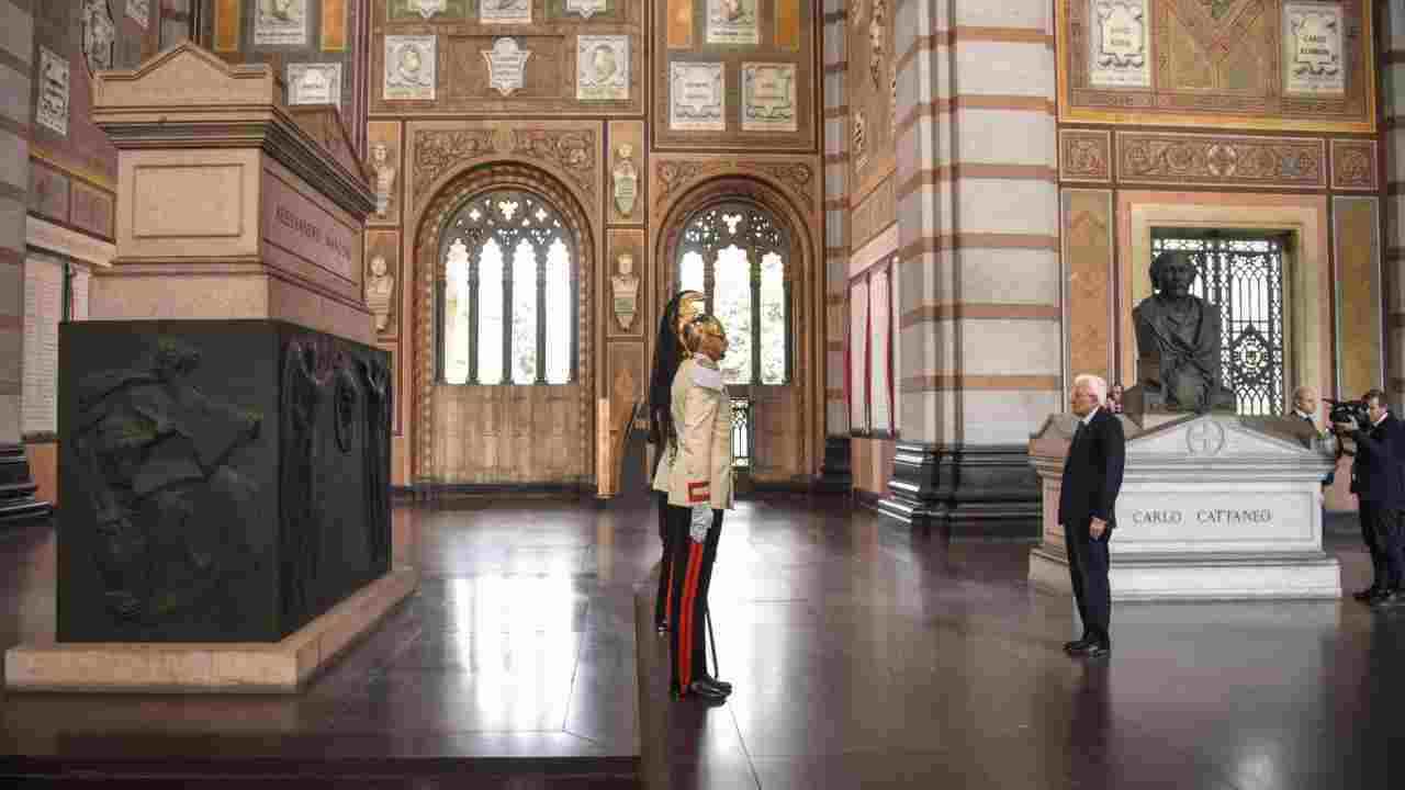 Al Famedio del Cimitero Monumentale – il pantheon dei milanesi illustri – si trova il sepolcro di Manzoni e qui Mattarella ha partecipato alla deposizione di una corona tricolore con rose bianche e rosse e anturium verdi.