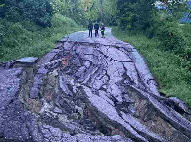 Una strada distrutta a Bagno di Romagna (Forlì-Cesena)