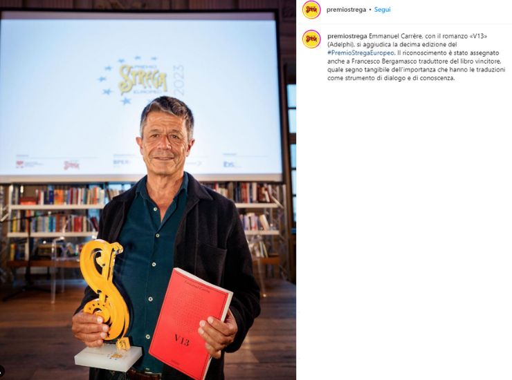 Il Premio Strega Europeo 2023 è andato a Emmanuel Carrère e al suo V13. Così come al traduttore del libro vincitore, Francesco Bergamasco, “quale segno tangibile dell’importanza che hanno le traduzioni come strumento di dialogo e di conoscenza” come specifica il premio. Come ormai da tradizione ben consolidata, i cinque finalisti del Premio Strega Europeo hanno presentato i propri romanzi in gara durante il Salone del Libro di Torino 2023. Il premio è assegnato da una giuria composta da 24 scrittori e scrittrici italiani vincitori e finalisti del Premio Strega. Come riportato dal comunicato stampa, l’autore ha ottenuto 11 voti su un totale di 24. La premiazione è avvenuta presso il Circolo de Lettori durante il Salone del Libro di Torino.