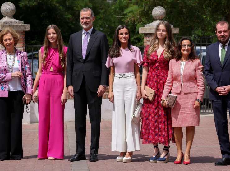 La principessa Sofia ha scelto di sfoggiare dei colori sgargianti per la cresima. L’Infanta ha optato per una tuta fucsia con un taglio sopra la vita. Per le scarpe e la borsa, invece, ha smorzato i toni con un colore naturale e tenue. La sorella maggiore, invece, ha indossato un abito midi stampato con maniche corte a cui ha abbinato le tipiche espadrillas. Anche la regina Letizia ha sposato gli stessi colori sui toni del rosa, con pantaloni bianchi, camicetta color malva ed espadrillas. Alla domanda su come si sentisse prima della cerimonia, la principessa ha risposto con un “bene”. Le immagini dell’evento mostrano una famiglia unita e in armonia. Non sono sfuggite, infatti, le numerose strette di mano tra le due sorelle. I gesti affettuosi di Leonor e Sofia nei confronti delle loro nonne, che hanno abbracciato con affetto, sono stati costanti.