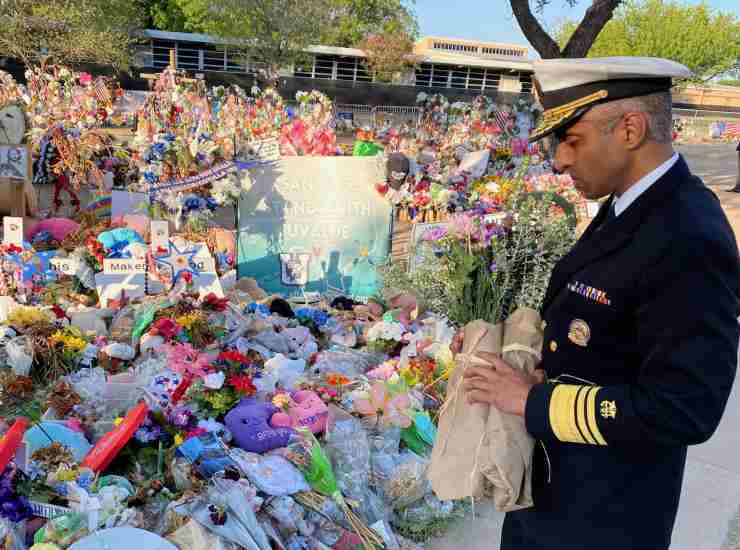 Il Surgeon General degli Usa, Vivek Murthy, si è recato a Uvalde (Texas) il 24 maggio per commemorare il primo anniversario della strage di bambini alla Robb Elementary School. Foto Twitter @Surgeon_General