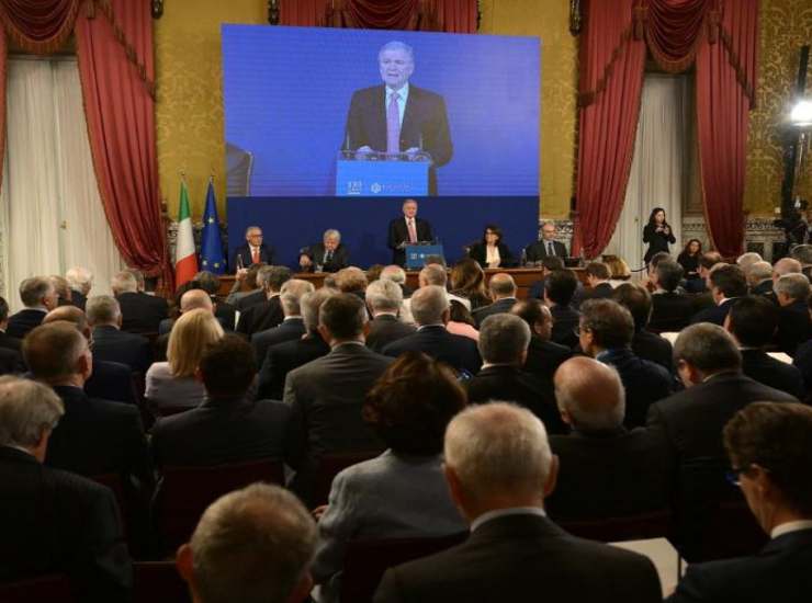 Un momento dell’assemblea della Banca d’Italia a Palazzo Koch a Roma. Foto Twitter @UfficioStampaBI