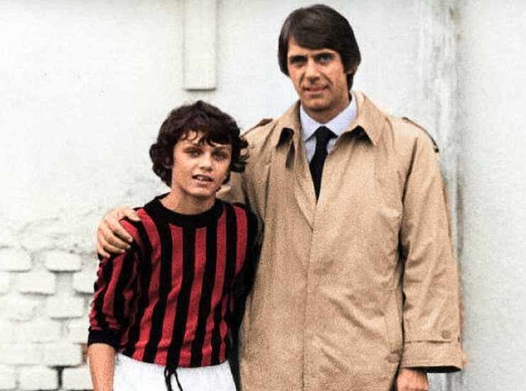 Paolo Maldini da bambino con il padre Cesare, storica bandiera del Milan e allenatore della Nazionale
