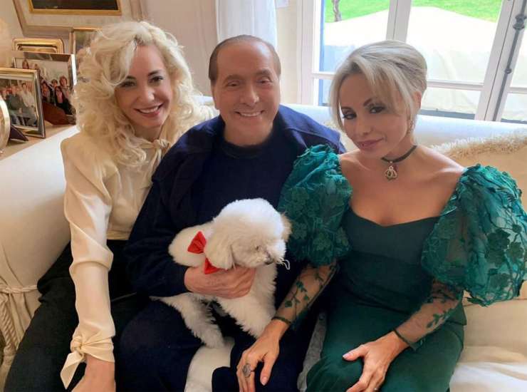 Silvio Berlusconi con la compagna Marta Fascina (a sinistra) e la figlia Marina. Foto Ansa/Facebook Silvio Berlusconi