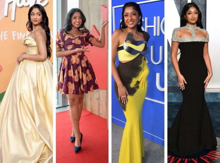 Essendo particolarmente legata alla sua realtà, Maitreyi Ramakrishnan ha anche presenziato all’inaugurazione dei nuovi studi Netflix a Toronto e, per l’occasione, ha indossato un minidress floreale con spalline a palloncino di Good American e décolleté blu royal in velluto. In occasione dei Fashion Trust U.S. 2023, ha dato prova del suo tocco glam indossando un cut out dress effetto degradè con dettaglio monospalla e guanto di Bloni Atelier. Maitreyi Ramakrishnan ha partecipato anche al blue carpet dei Vanity Fair Oscar Party 2022, con un long dress nero in velluto e corpetto ravvivato da lingue d’argento con glitter. L’abito porta la firma di Christian Siriano. In aggiunta ha sfoggiato sandali di Jimmy Choo.
