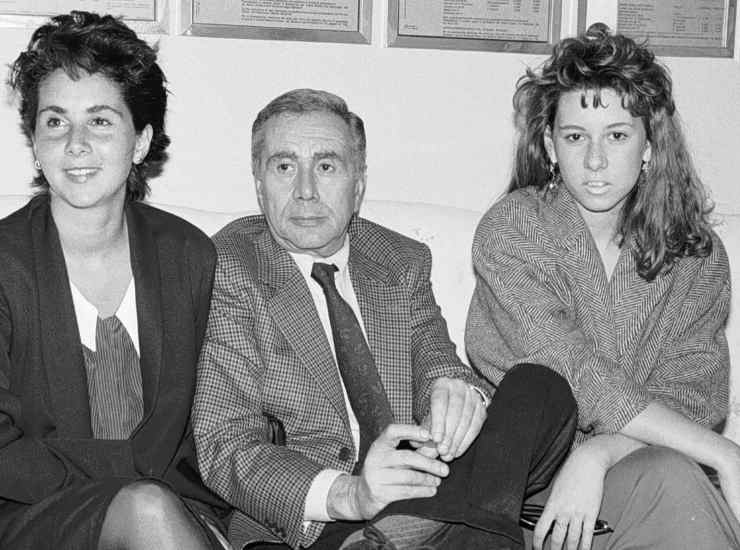Enzo Tortora tra le figlie Silvia (a sinistra) e Gaia. Foto Ansa
