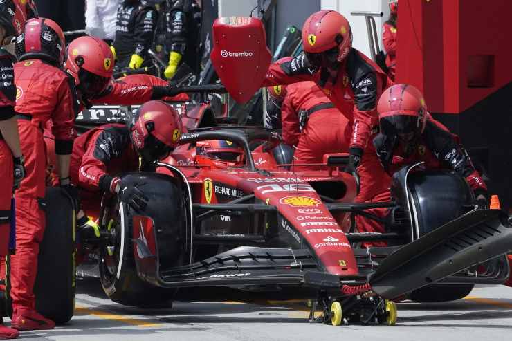 Ferrari ai box GP di Canada 2023 @Crediti Ansa – VelvetMag