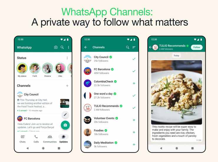 I canali di Whatsapp appariranno nella nuova sezione “Aggiornamenti“, separata dalle chat private con la famiglia, gli amici e le community. L’idea è quella di permettere ad aziende e pubbliche amministrazioni di comunicare, in maniera rapida e immediata, con gli utenti iscritti ai singoli canali. E ciò sia per questioni di emergenza che per aggiornamenti su attività ed eventi.