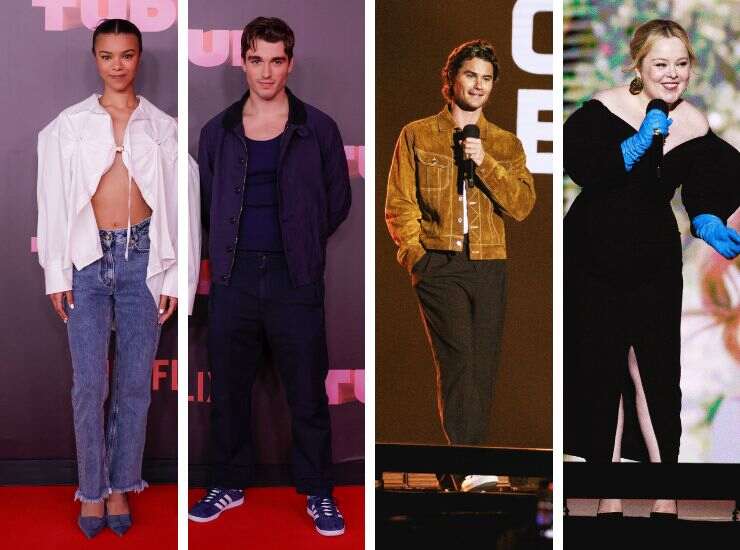 Al suo fianco, la co-star Corey Mylchreest ha optato per un look casual sui toni del blue e sneakers Adidas. Ultra chic è invece Nicola Coughlan. L’attrice di Bridgerton non ha abbandonato ancora l’allure Regency del suo show e l’ha portato con sé sul red carpet di Netflix, indossando un midi total black con scollo a cuore, in velluto, disegnato da Mara Hoffman. In aggiunta ha scelto guanti di uno sfavillante azzurro di Paula Rowan e decolleté a punta di Louboutin. Dritto dal cast di Outer Banks è Chase Stokes, che è apparso in Brasile con un look casual, giacca di jeans sfumatura caramello, t-shirt e pantaloni a vita alta.