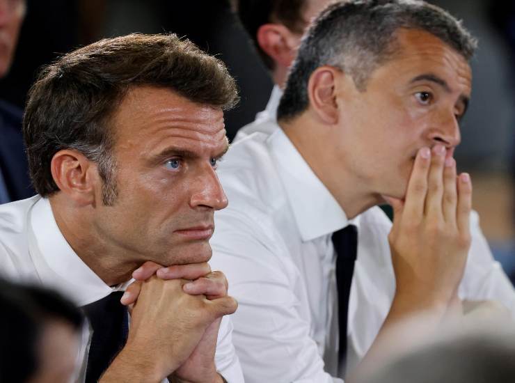 Marcon col ministro dell’Interno francese, Darmanin. Foto Ansa/Epa Ludovic Marin
