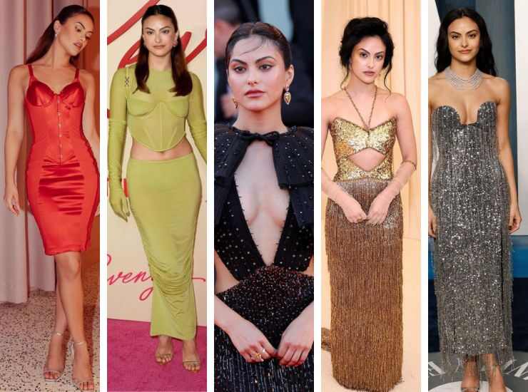 Camila Mendes ha raggiunto anche la Mostra del Cinema di Venezia nel 2022, per prendere parte alla première di Bones and All. Sul tappeto rosso in Laguna, ha optato per un look total black, firmato Giorgio Armani Privé. Si tratta di un long dress rivestito di paillettes con profonda scollatura a V e dettagli cut out con spalline di volant e strass in rilievo. Quell’anno ha sfilato anche sul tappeto rosso del Met Gala, proponendo una creazione in oro con paillettes e frange ed un corpetto cut out. L’abito porta la firma di Ami Paris. In aggiunta ha proposto gioielli di Fred Leighton. E non rinuncia all’effetto sparkling neppure ai Vanity Fair Oscar Party 2022, con un midi senza spalline in argento di Carolina Herrera. In aggiunta gioielli di Messika e décolleté di Rover Vivier.