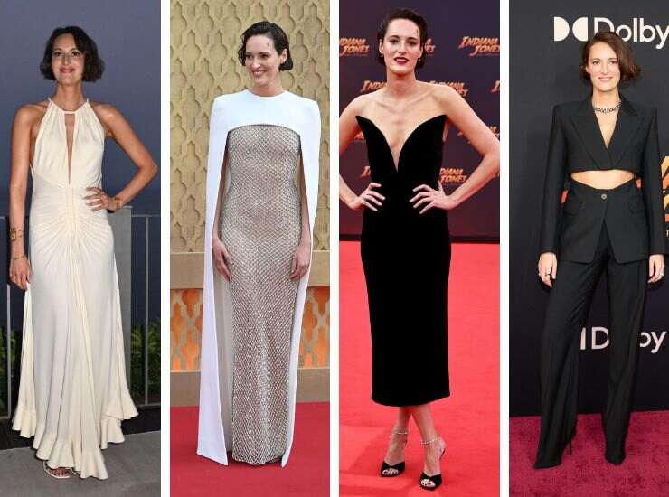 Grazie ad Indiana Jones, Phoebe Waller-Bridge ha raggiunto anche il red carpet del Festival di Cannes. Per il photocall d’arrivo, ha scelto un completo total white con maxi scollatura e dettaglio wrap di Dolce&Gabbana. Poco dopo, per l’ambito red carpet, l’attrice ha proposto una creazione di Schiaparelli Haute Couture, questa volta in tinta total black. L’abito è in raso con coda a sirena ravvivata da volant. In aggiunta vi ha abbinato guanti in velluto. Al photocall finale di Cannes, invece, ha salutato i fotografi con un midi total black e ricami in pizzo di Dolce&Gabbana. Phoebe Waller-Bridge ha preso parte anche agli Oscar 2023, con un long dress nero in velluto senza spalline e scollo a cuore, sempre firmato Dolce&Gabbana. Ed è sempre total black in tailleur per i Golden Globes 2023.