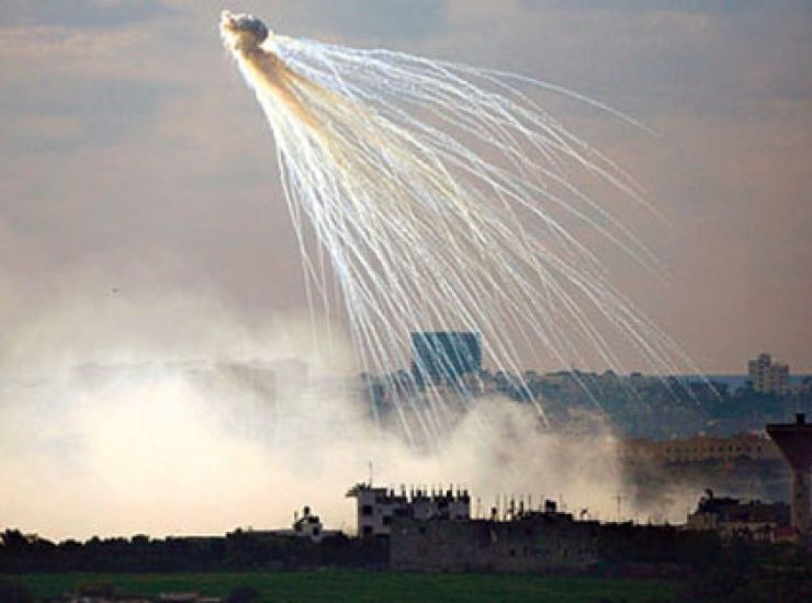 Bombe al fosforo: contengono fosforo bianco che brucia rapidamente e incendia tutto. Foto Twitter @annehanamura