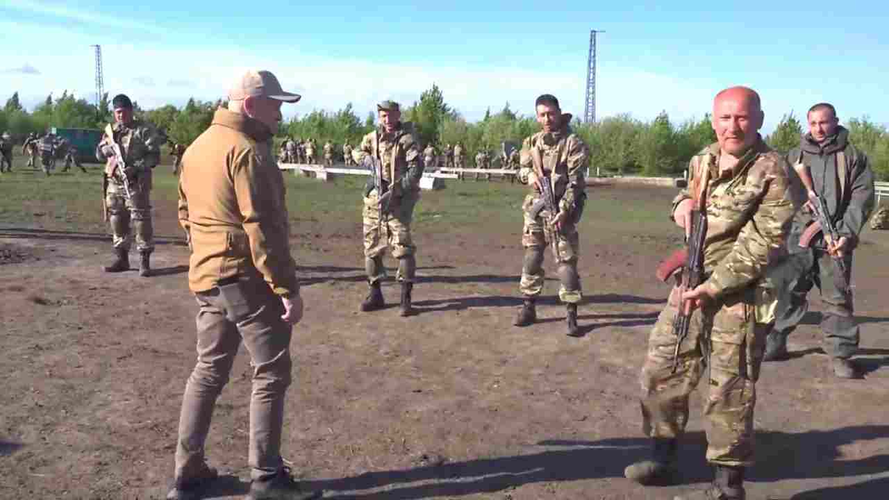 Yevgeny Prigozhin, capo dei mercenari Wagner (a sinistra) in un frame video dal canale Telegram “Wagner Z group”. Foto Ansa