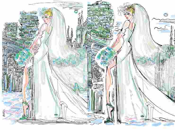 È il trademark di Jacopo Ascari che, con i suoi disegni e le illustrazioni dai colori vividi, traccia una linea di congiunzione tra moda e architettura, due discipline apparentemente lontane eppure così vicine, che lui indaga da sempre nel suo percorso artistico. Un tratto che Sì Sposaitalia Collezioni ha imparato a conoscere e ad apprezzare fino dalla sua ultima edizione quando ha affidato al creativo la cover, da collezione, del suo Yes, I Do, il suo primo trend book dedicato alle tendenze presenti in fiera.