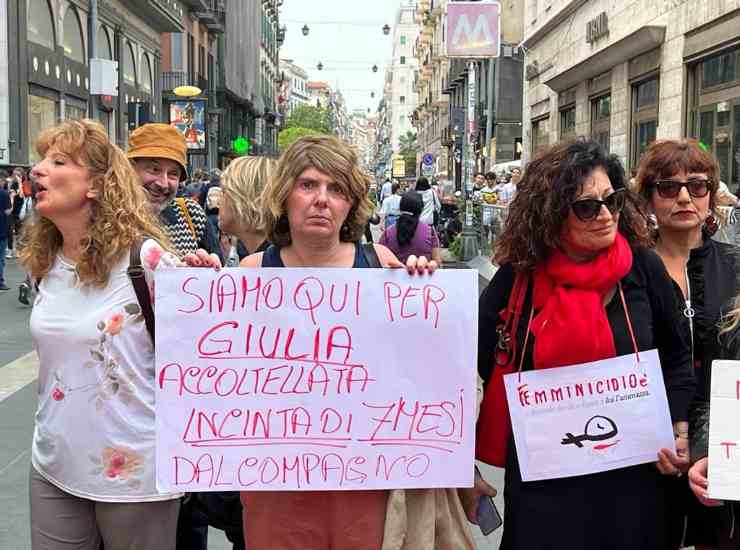 Una manifestazione a Napoli dopo un femminicidio il 1 Giugno 2023. Foto Ansa/Ciro Fusco