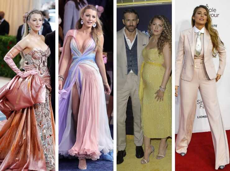 Poco dopo, sul tappeto rosso del Met Gala 2022, Blake Lively ha lasciato il segno nella storia dell’evento newyorkese indossando una creazione double face di Versace, i cui colori richiamano la Statua della Libertà, passando dal rame al blu marino. Il cambio look è avvenuto in corsa sulle scalinate del Metropolitan Museum of Art. Ed è sempre Versace l’abito dalle sfumature arcobaleno pastello scelto per la première di The Adam Project, film con protagonista Ryan Reynolds. L’abito con delicata mantella gioca con intrecci plissé e fa parte della collezione Primavera 2019 della maison. Giallo sole è il midi rivestito di micro paillettes che l’attrice ha sfoggiato alla première di Pokeman Detective Pikachu a New York nel 2019. Infine, per Un piccolo favore a Londra, ha optato per un tailleur rosa cipria di Ralph Lauren Collection.