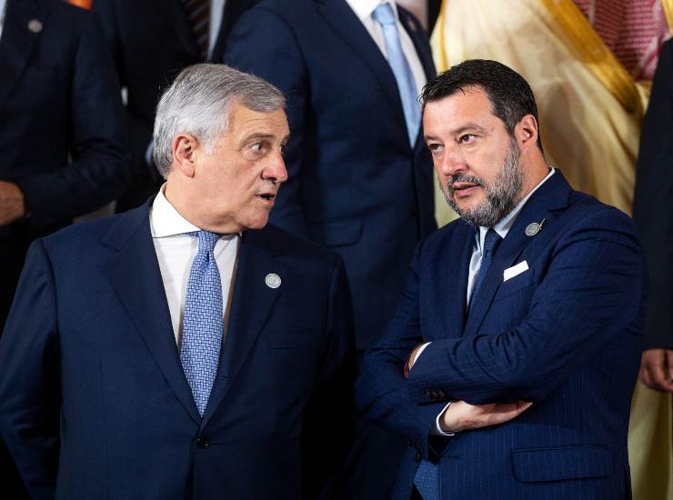 Antonio Tajani (a sinistra) e Matteo Salvini. Foto Ansa/Angelo Carconi