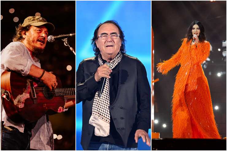 Cantanti italiani: (da sx) Zucchero, Al Bano, Laura Pausini @Crediti Ansa – VelvetMag