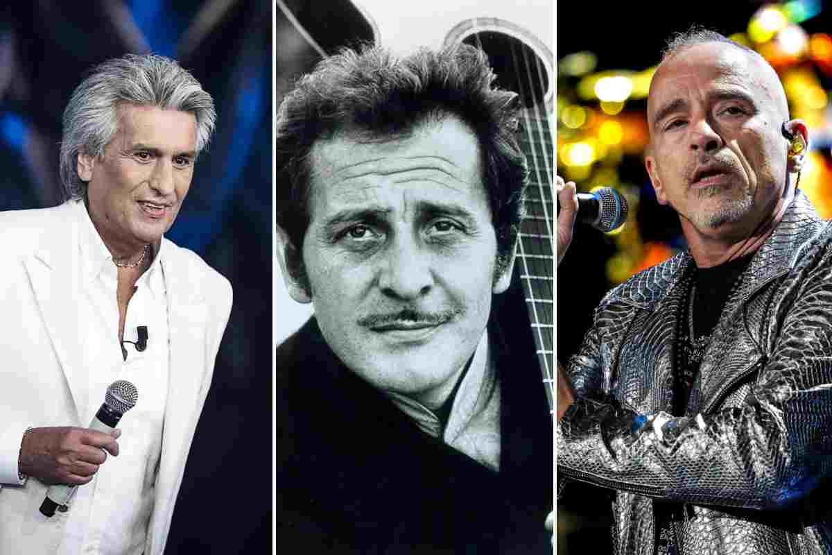 Cantanti italiani: (da sx) Toto Cutugno, Domenico Modugno, Eros Ramazzotti @Crediti Ansa – VelvetMag