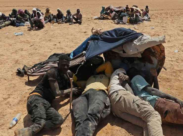 Migranti abbandonati nel deserto dalle forze di polizia tunisine lo scorso luglio. Foto Twitter @mullansp