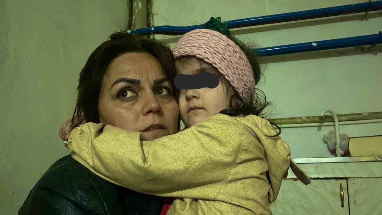Nagorno-Karabakh, una mamma e una bambina in un rifugio a seguito dell’attacco militare dell’esercito azero. Foto Twitter @SiranushSargsy1