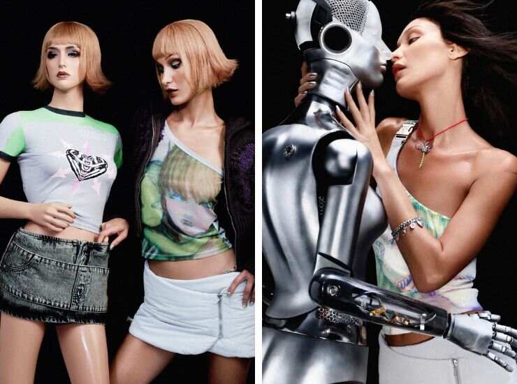Heaven, seconda linea di abbigliamento di Marc Jacobs, ha scelto Bella Hadid come protagonista della sua nuova campagna, realizzata dall’obiettivo di Carlijn Jacobs. Posa da sola, infatti, negli scatti della campagna, dividendo la scena soltanto con sé stessa oppure con altri cyborg. Non passa di certo inosservato il maxi plateau rosa fragola dei Kiki Boots della collezione oppure la minigonna denim a vita bassa. In ogni caso Bella Hadid ha sempre seguito l’azzardo, anche in passerella. Qualcuno, infatti, ricorderà quando insieme a sua sorella Gigi Hadid ha sfilato proprio per Marc Jacobs, a New York, con i lati della testa rasata.