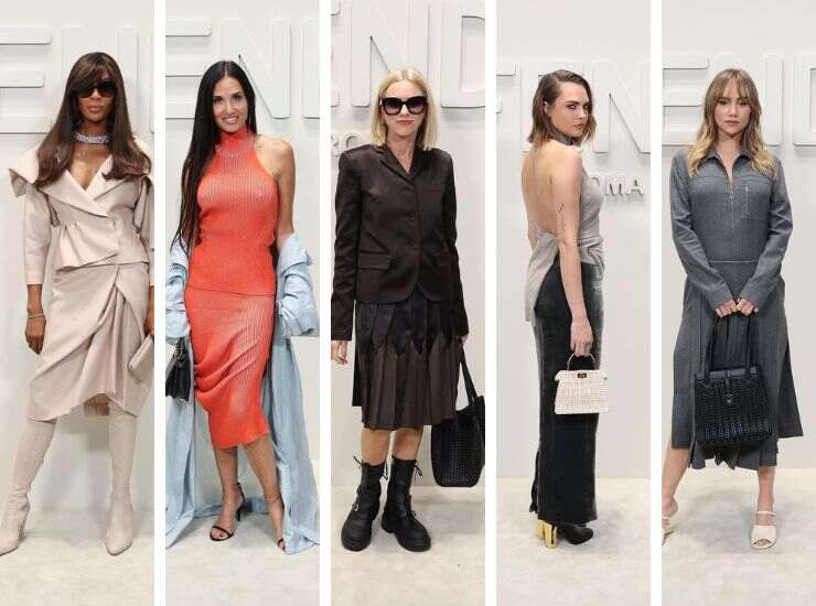 Questo focus non è improntato sullo spettacolo in passerella, quanto più sulle proposte avvistate in prima fila. Merito delle star, che non rinunciano ad un’occasione ghiotta come la settimana della moda. In arrivo in quel di Milano, hanno accompagnato in tantissime la sfilata di Fendi. Immancabile Naomi Campbell fasciata nel suo completo avorio in raso di Fendi, a cui ha abbinato cuissardes ton sur ton così come la micro pochette e un collier di diamanti. Demi Moore invece ha scelto un completo a costine di un’elegante sfumatura corallo, a cui ha abbinato una mantella in raso azzurro pastello.
