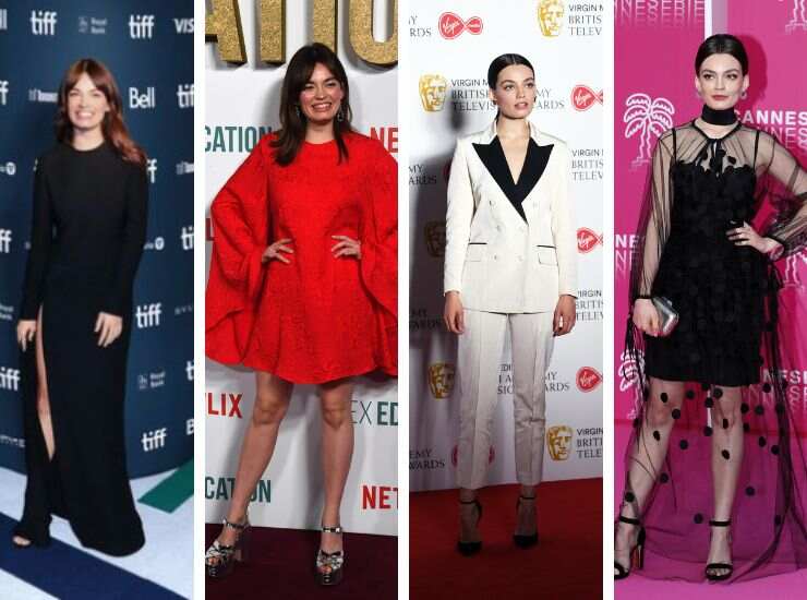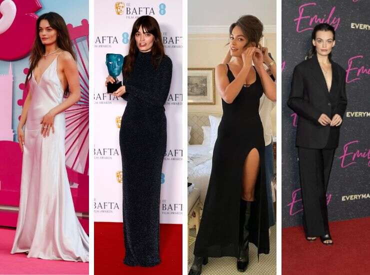 Molto vicina alla maison Prada, Emma Mackey ha indossato spesso i suoi look. Un esempio è il tailleur total black in raso con giacca monopetto proposto alla première di Emily, film di cui è protagonista. Ed è ancora Prada il long dress nero aderente con spacco laterale della gonna che l’attrice di Sex Education ha proposto al Toronto International Film Festival 2022. Ha preso parte all’evento sempre per la promozione di Emily. Per quanto riguarda il press tour di Eiffel, l’attrice nel 2021 ha indossato un altro long dress nero, scollato e aderente con maxi spacco laterale a U firmato AMI Paris. Vi ha abbinato cuissardes lucidi e gioielli di Tiffany&Co.