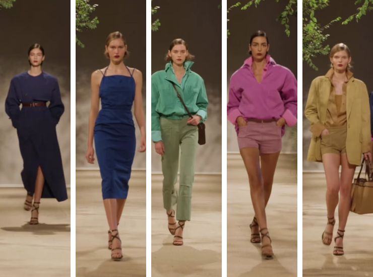 Max Mara non rinuncia al suo caratteristico cammello style, che accompagna ancora una volta la sua collezione Primavera/Estate 2024, ma questa volta cerca di rifarsi ad una palette più vasta, rincorrendo i toni nude per poi avvicinarsi ai colori della terra, dall’effetto sabbia bagnata alle sfumature più delicate e oro del deserto. La prossima stagione è segnata anche dalle sfumature di blu, così decise ed eleganti, che si alternano anche a completi in turchese, senza rinunciare al verde oliva e al rosa confetto che strizza l’occhio al Barbiecore ancora predominante.