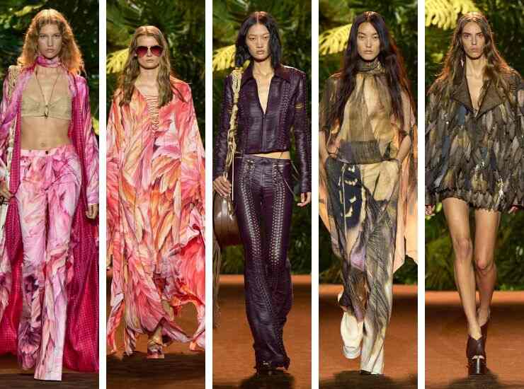 Roberto Cavalli è stato uno dei primissimi ad inaugurare la Milano Fashion Week con la sua collezione Primavera/Estate 2024, anticipando il desiderio di colori con una tavolozza che rincorre sfumature di rosa. Lo stilista Fausto Puglisi ha proposto toni caldi, estivi, con silhouette ariose pensate per donne che “non si vestono per nessuno se non per loro stesse“. Abiti sensuali, quelli proposti da Roberto Cavalli, pensati per una giornata a bordo piscina in totale relax, restituendo un’atmosfera rilassata ricreata anche in passerella, con uno stile che richiama la dance degli Anni ’70. Tantissimi fiori accompagnano le modelle in passerella, con pantaloni a vita bassa, blazer aperti, abiti sinuosi e body dress.