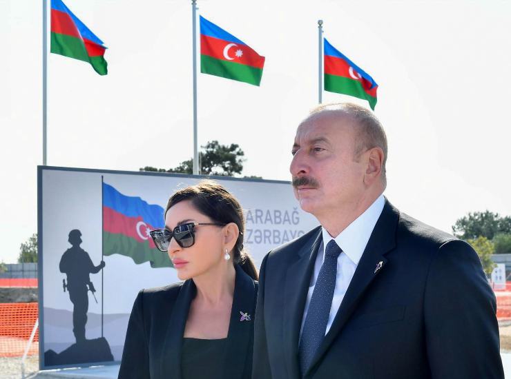 Il presidente dell’Azerbaigian Ilham Aliyev con la first lady, Mehriban Aliyeva. Foto Ansa/Epa
