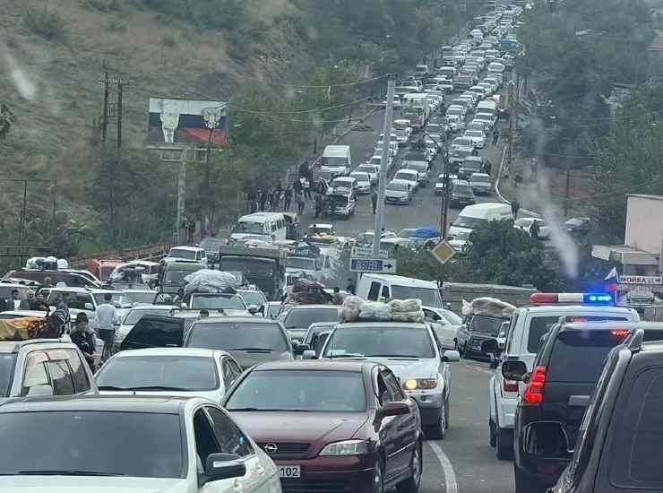 Decine di migliaia di armeni fuggono dal Karabakh. Foto Twitter @MarianoGiustino