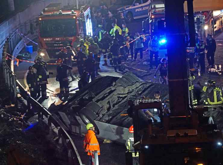I soccorritori attorno al bus precipitato: 21 le vittime e 15 i feriti, alcuni gravi. Foto Ansa/Andrea Merola