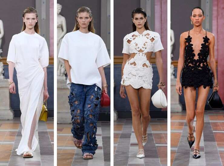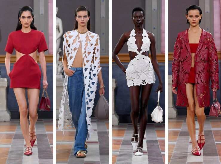 “È importante che le donne siano libere di esprimersi attraverso il proprio corpo e di non essere giudicate. C’è una percezione riguardo all’idea di nudità o all’esposizione del corpo. Mi piace l’idea dell’Eden prima del peccato originale. In un certo senso, aggiungiamo il cliché della sensualità, della seduzione, attorno al corpo. Penso che ci debba essere libertà di scelta per le donne, sempre“, ha aggiunto Pierpaolo Piccioli come riporta WWD. Ed ecco la sua risposta: le modelle indossano abiti traforati, gonne corte, con decorazioni tridimensionali tramite una tecnica di altorilievo. “Ciò che vedi come decorazione diventa la costruzione stessa“. Una tecnica scelta per miniabiti, canotte, sottovesti e crop top.