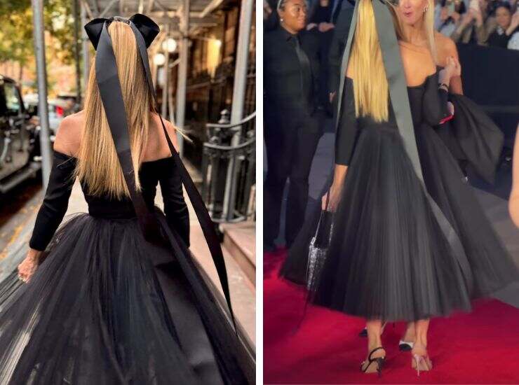 A distanza di poche settimane dalla conclusione di And Just Like That 2 Sarah Jessica Parker è riapparsa in pubblico sopperendo alla mancanza di Carrie dal piccolo schermo. Per l’occasione ha indossato un elegante midi total black con gonna a ventaglio plissè in chiffon e corpetto con scollo a barchetta firmato Carolina Herrera. L’abito fa parte della collezione Fall/Winter 2023/2024. Una versione dark della sua Carrie, personaggio che sembrerebbe accompagnarla ora più che mai sul red carpet, soprattutto per il dettaglio scarpe.