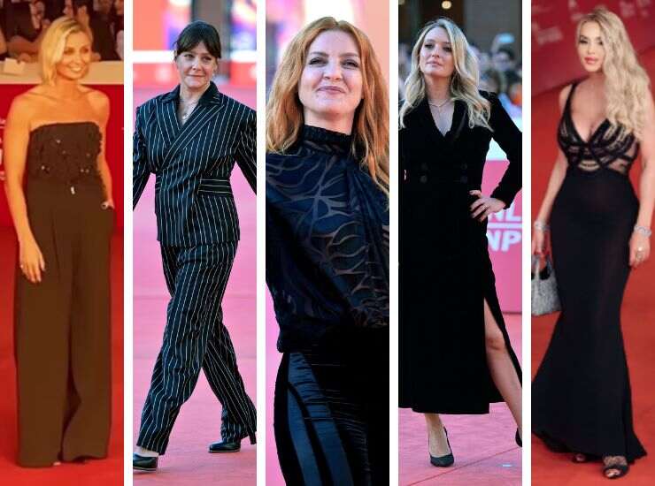 Per la quinta giornata di red carpet alla Festa del Cinema di Roma 2023 arriva anche Valeria Marini, fasciata in un abito total black con top gioiello. Anna Ferzetti rispetta il trend del total black con un completo jumpsuit senza spalline e top ravvivato da frange di paillettes ton sur ton. Anche Noemi è riapparsa sul tappeto rosso, questa volta fasciata in una creazione total black di Alberta Ferretti, con velluto e chiffon predominanti. In velluto è anche il blazer dress nero indossato da Carolina Crescentini, abbinato alle décolleté. Infine Giovanna Mezzogiorno ha preferito un tailleur gessato con gioielli Bulgari.