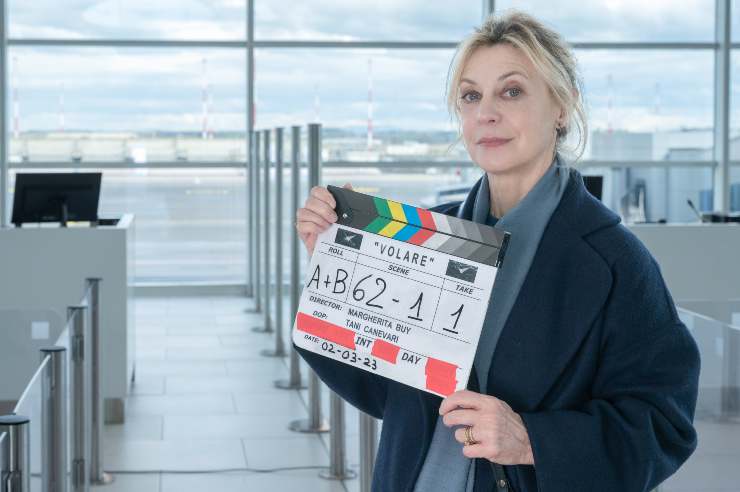 Margherita Buy fa il suo esordio dietro la macchina da presa con il film Volare. Nel ruolo della protagonista l’attrice-regista ha al suo fianco un cast corale nel quale sono presenti anche sua figlia, Caterina De Angelis (nel ruolo della figlia della protagonista) e poi Anna Bonaiuto, Giulia Michelini, Euridice Axen, Francesco Colella, Roberto De Francesco, Maurizio Donadoni, Pietro Ragusa, con la partecipazione di Massimo De Francovich e con l’amichevole partecipazione di Elena Sofia Ricci. Una produzione Kavac Film, Maremosso, IBC Movie, Tenderstories con Rai Cinema, in collaborazione con ITA Airways, prodotto da Marco Bellocchio, Beppe Caschetto, Simone Gattoni e da Ada Bonvini, Luca Lucini, Lorenzo Ulivieri, Stefano Quaglia, Malcom Pagani e Moreno Zani. Nelle sale cinematografiche nel 2024, il film, presentato in anteprima alla 18esima Festa del Cinema di Roma, affronta un argomento spinoso ma con la leggerezza di una commedia.
