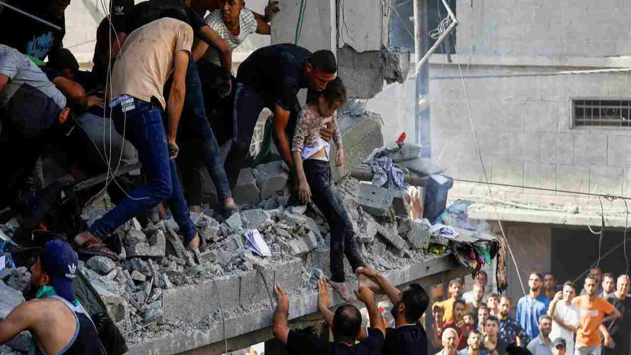 Una bambina estratta dalle macerie di un bombardamento israeliano a Gaza. Foto Twitter @Timesofgaza