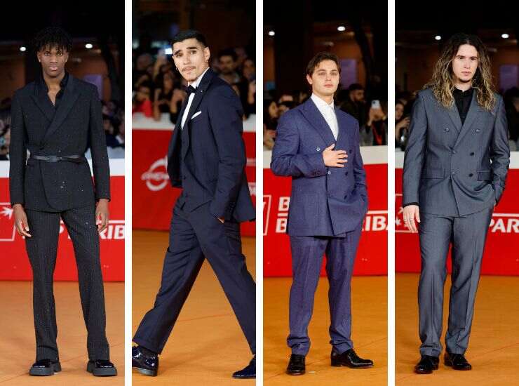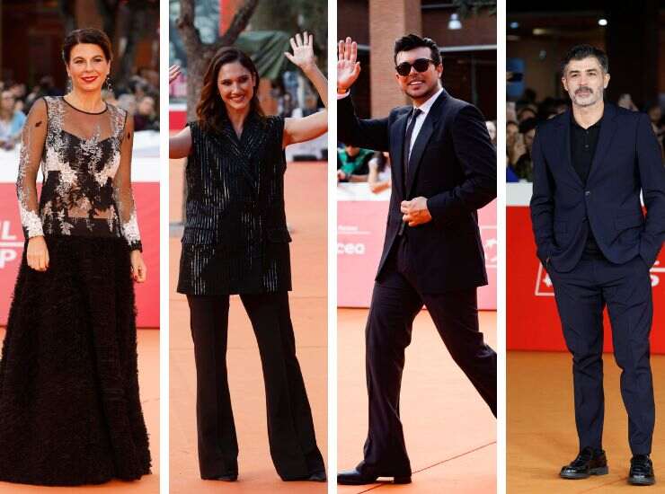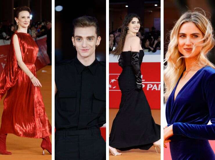 Giovanna Sannino ha scelto un look da diva, con un long dress aderente total black con scollatura a cuore e guanti in velluto. Vi ha abbinato un collier in oro. Domenico Cuomo ha preferito un look total black con dettaglio smanicato. Colori che spezzano la palette sono quelli proposto da Miriam Galanti, ad esempio. Sul red carpet della Festa del Cinema di Roma 2023 ha indossato un completo jumpsuit blu elettrico con scollo a V e in velluto. Vi ha abbinato sandali d’argento. O ancora il colore rosso rubino scelto da Pia Lanciotti, fasciata nel suo abito plissé di Hermés con stivali in pendant.