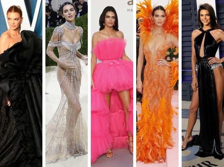 Ai Vanity Fair Oscar Party 2022, Kendall Jenner ha scelto nuovamente il total black con un abito drammatico di Balenciaga, accompagnato da rouches e drappeggi. Al Met Gala 2021 il look gioca con le trasparenze. Il suo è un abito gioiello con diamanti di Givenchy Haute Couture. Rosa shocking è invece il long dress con balze e rouches indossato all’amfAR Gala di Cannes nel 2019, firmato Giambattista Valli x H&M. E ancora, sul tappeto rosso del Met Gala di quell’anno, la modella ha preferito un look vitaminico, con arancio ravvivato da piume e paillettes di Versace. Nero lucidissimo è l’abito con spacco vertiginoso della gonna proposto ai Vanity Fair Oscar Party 2019. Questa volta Kendall Jenner ha scelto Rami Kadi Couture.