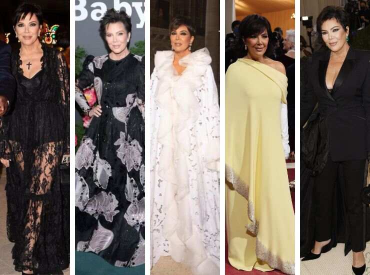Il 2022 è stato anche l’anno dello spettacolo di Dolce&Gabbana in Sicilia. Per l’occasione, Kris Jenner ha raggiunto l’isola per la sfilata d’Alta Moda della maison indossando un long dress bianco in pizzo sangallo ravvivato da rouches in chiffon sfumatura champagne. Un look da vera diva per un’estate italiana. Ed è stato anche l’anno del Met Gala. Per l’edizione 2022, ha accompagnato sua figlia Kim Kardashian sul tappeto rosso. E se sua figlia ha reso omaggio a Marilyn Monroe con un abito del suo archivio che ha incendiato la polemica, Kris Jenner ha optato per un abito color crema monospalla di Oscar de la Renta. Vi ha abbinato orecchini di Lorraine Schwartz, micro clutch gioiello di Tamara Mellon e intimo di Skims. L’anno precedente, sul red carpet del Met Gala 2021, sempre accompagnata dalla sua dolce metà ha scelto un tailleur total black in raso di Tom Ford.